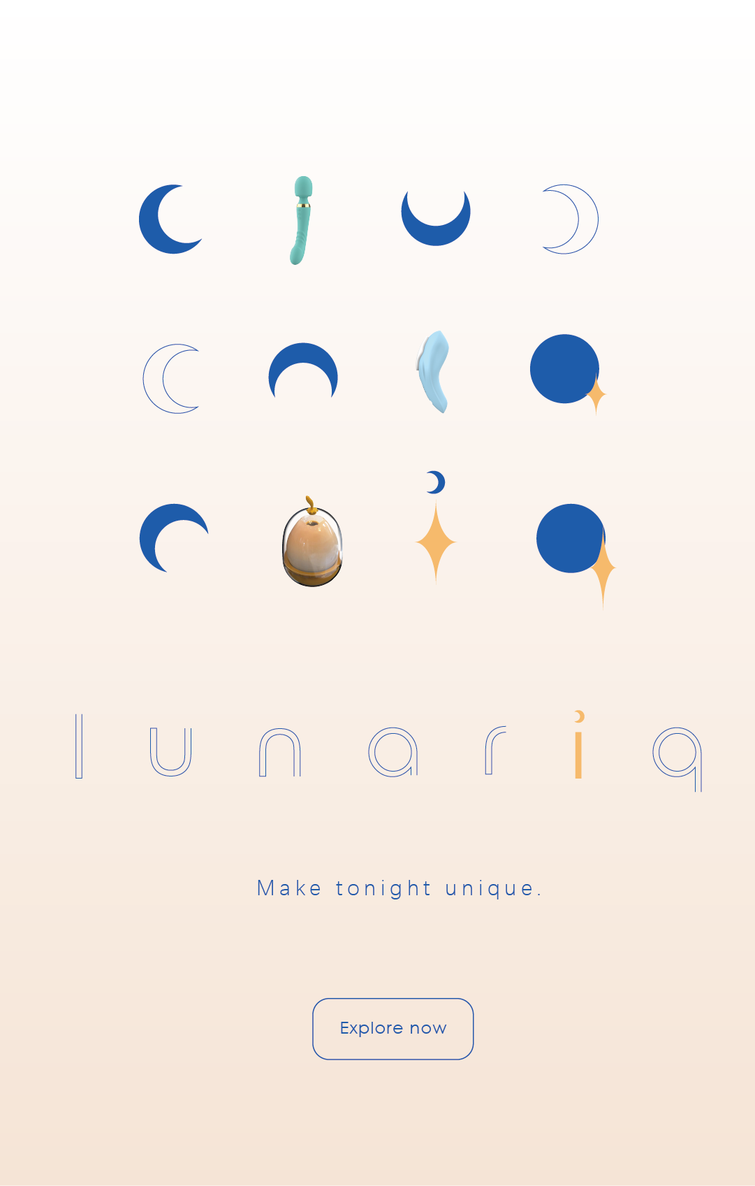 A decorative hero image with logo and slogan: lunariq - make tonight unique